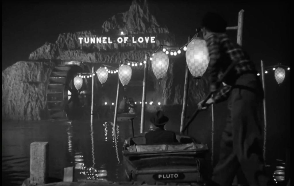 In one of the only sequences filmed in darkness, Engstrom chases the killer through a bunker and we are reminded of Bruno pursuing Miriam in a boat through the tunnel of love. There, Hitchcock ratchets up the tension by using a night time setting against a continuum of light: the glare of carnival rides; silvery flashes in the tunnel; the subtle glow of a lighter. Though Miriam is aware she is being pursued and who is pursuing her, she is unaware she’s being stalked. Sexually charged, she looses sight of Bruno and her head is on a swivel. He is chasing her and she is chasing him.